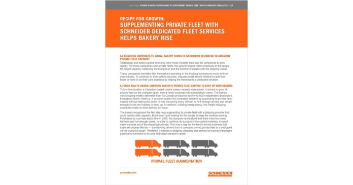 It was becoming more difficult to hire enough drivers and obtain enough trucks and trailers to keep up. Wanting to focus on their business, the company turned to Schneider to augment private fleet capacity.