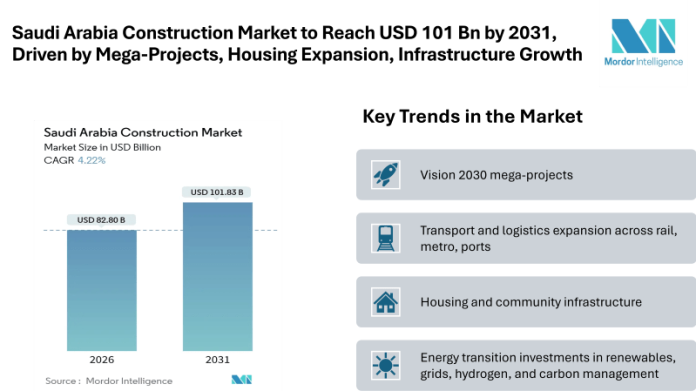 Saudi Arabia Construction Market Forecast to Reach USD 101.83 Billion by 2031, Driven by Mega-Projects, Housing Expansion, and Infrastructure Growth